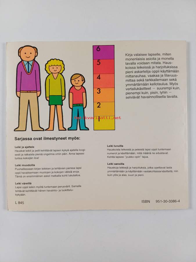 Muu(t) tekijä(t): Sirkka Salmi, Geoffrey ButcherSarja: Tammen iloinen esikouluAlkuteos: Measuring thingsAsiasanat: oppikirjat, esikoulu, läroböcker, förskolan