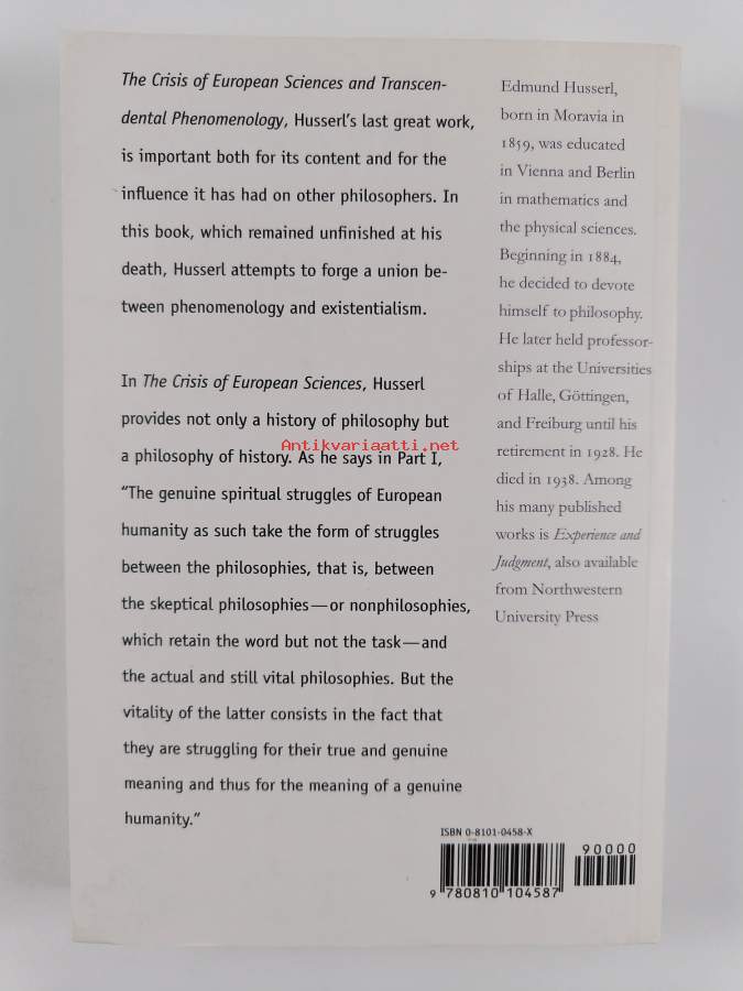 Muu(t) tekijä(t): David CarrSarja: Northwestern University studies in phenomenology and existential philosophyAlkuteos: Krisis der europäischen Wissenschaften und die transzendentale Phänomenologie.Asiasanat: filosofia, eksistentialismi, fenomenologia, tieteen edistyminen, filosofi, Science, vetenskaplig utveckling, fenomenologi, Existentialism, Philosophy, Modern, Phenomenology