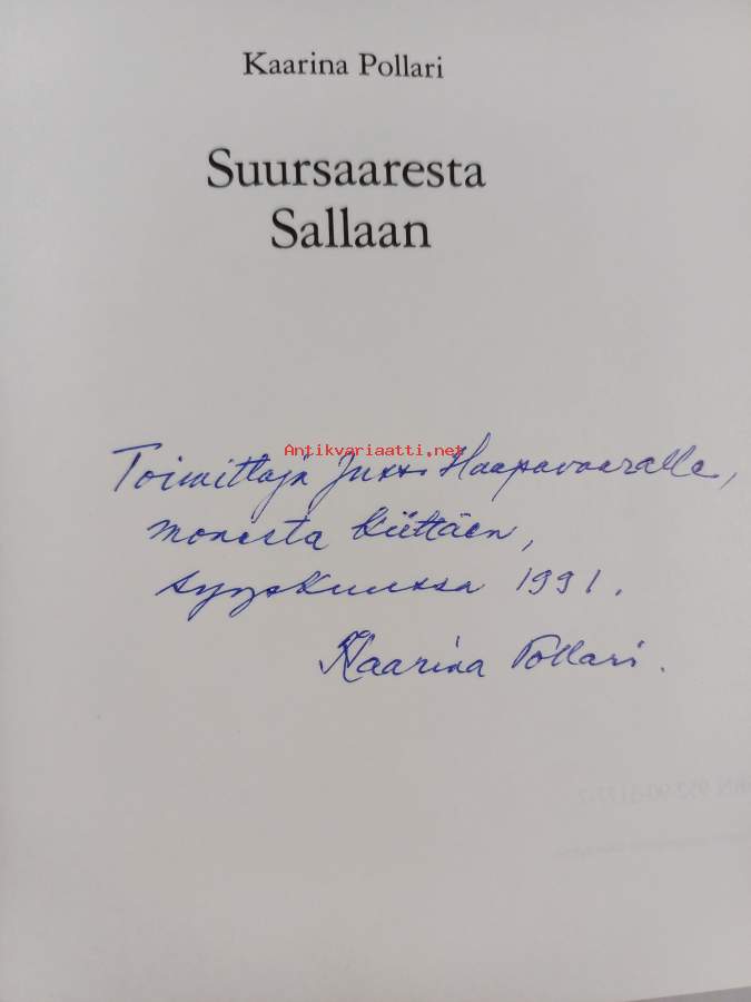 Suursaaresta Sallaan : Vilppulan-Pohjaslahden sankarivainajat 1939-1944 : henkilökuvia : ajankuvia (signeerattu, tekijän omiste)