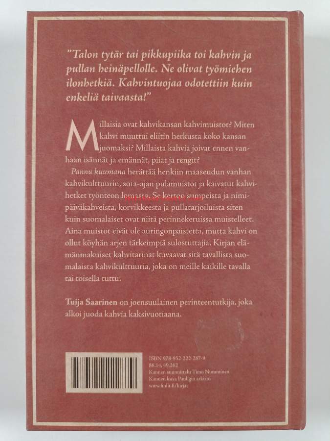 Sarja: Suomalaisen Kirjallisuuden Seuran toimituksia 1330; SKS:n toimituksia; SKS:n toimituksia 1330, TietoAsiasanat: kulttuurihistoria, kansanperinne, kahvi, tapakulttuuri, juomat, nautintoaineet, muistitieto, korvikkeet, juhlaperinne, säännöstely, kahvikupit