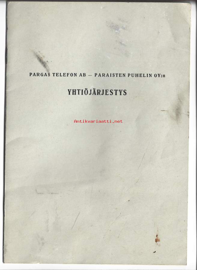 Paraisten Puhelin Pargas Telefon Yhtiöjärjestys 1956