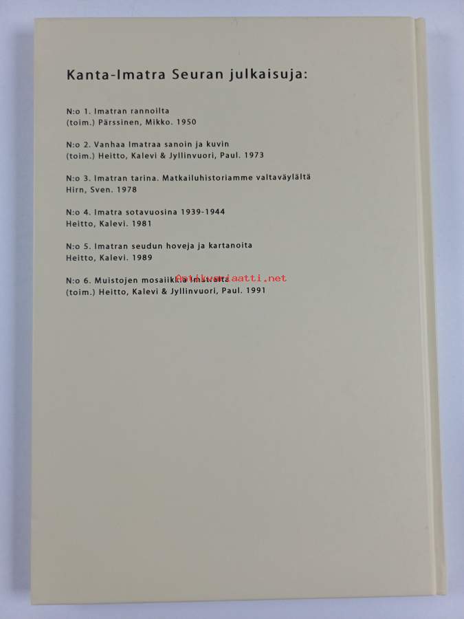 Muu(t) tekijä(t): Virpi KaistoSarja: Kanta-Imatra seuran julkaisu n:o 7Asiasanat: historia, järjestöhistoriikit, henkilöhistoria, kotiseutukuvaukset, kylät, kotiseutuyhdistykset, virvoitusjuomateollisuus, voimalat, paikallishistoriat (historiikit)