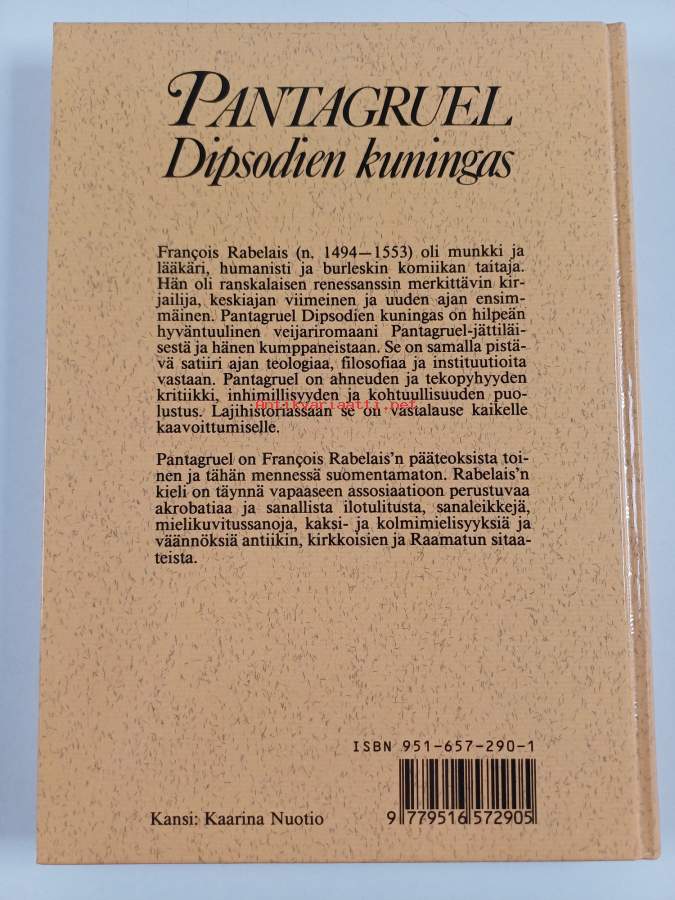 Koko nimi: Pantagruel Dipsodien kuningas : totuudenmukaisesti kerrottuna, ynnä hänen hirmuiset sankarityönsä ja urotekonsa kirjoittanut herra Alcofribas-vainaa, Kvintessenssin tislaajaAlkuteos: Pantagruel, roy des Dipsodes, restitue a son naturel, avec ses faicts et prouesses espoventables. Composez par feu M. Alcofribas, Abstracteur de Quinte Essence