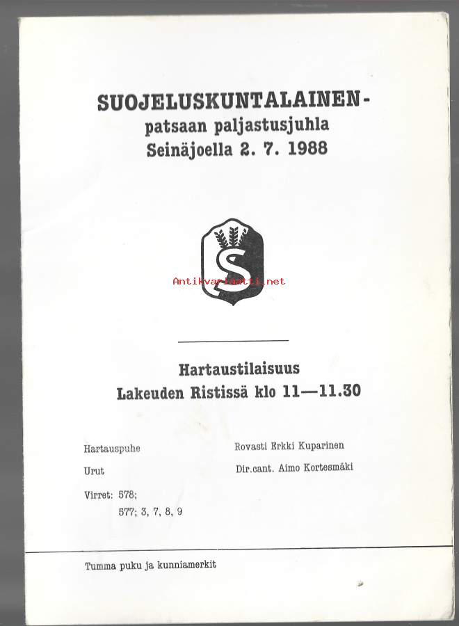 Suojeluskuntalainen patsaan paljastusjuhla Seinäjoki 1988