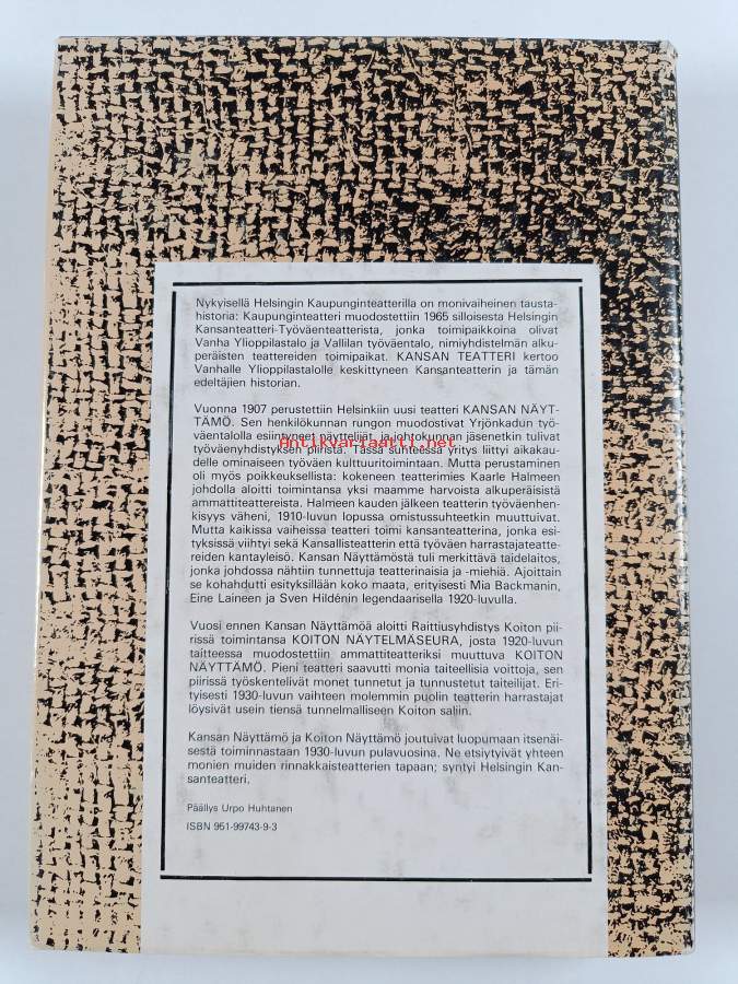Tyydyttävä. Tarkempi kuntoluokka: K2+ ; Hieman kulumaa kansissa, pienoista rispaantumaa kulmissa, sidos hieman näkyvissä yhdellä aukeamalla, selkämyksessä hieman vinoutta.