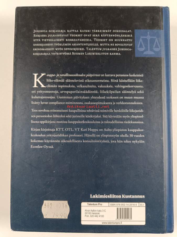 Muu(t) tekijä(t): Esko HoppuSarja: Juridica-kirjasarja 31Asiasanat: yritystoiminta, lainsäädäntö, varallisuusoikeus, avioliitto-oikeus, kuluttajansuoja, sopimukset, arvopaperit, oikeustoimi, omistusoikeus, kauppaoikeus, vakuudet, vahingonkorvaus, velkasuhteet, saamisoikeus, käyttöoikeus