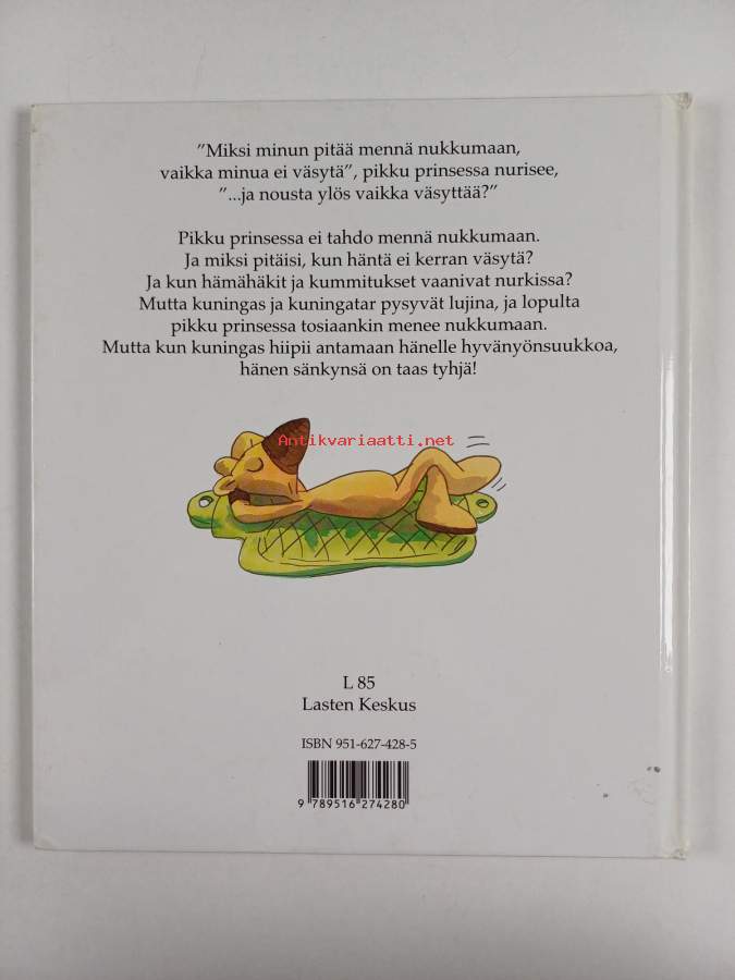 Muu(t) tekijä(t): Arja KanervaAlkuteos: I don't want to go to bed!Asiasanat: lastenkirjallisuus, prinsessat, kuvakirjat, kiukuttelu, nukkumaanmeno