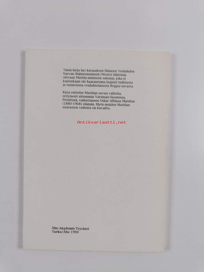 Wesilahden Narwan Weston Mattilat ja Oskar Albinus Mattilan suku 1880-1992