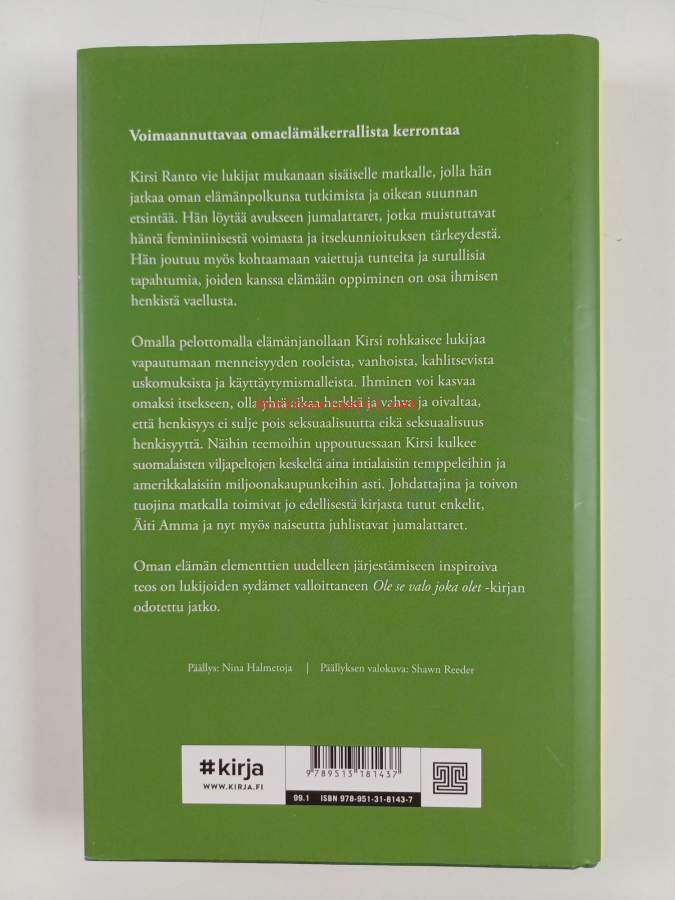 Erinomainen. Tarkempi kuntoluokka: K4- ; Aivan pienoista kolhua selkämyksen päissä, aivan pienoista kulumaa reunoilla ja kulmissa. Kansipaperin kunto: pientä kulumaa