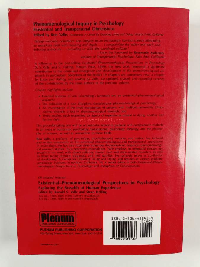 Phenomenological Inquiry in Psychology - Existential and Transpersonal Dimensions