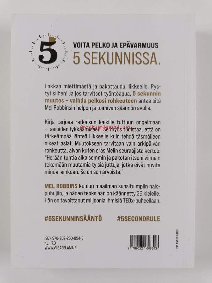 Muu(t) tekijä(t): Jaana-Mirjam MustavuoriAlkuteos: The 5 second ruleAsiasanat: elämäntaito, menestyminen, itsekasvatus, elämänhallinta, itseluottamus, rohkeus, motivaatio