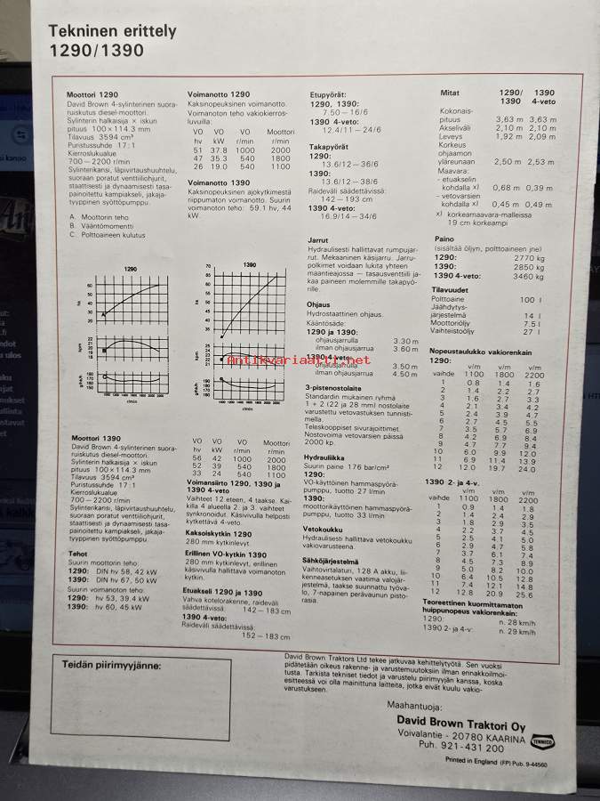 David Brown Case 1290, 1390 traktori -myyntiesite / tractor sales brochure