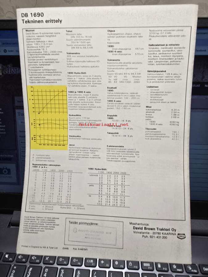 David Brown Case 1690 traktori -myyntiesite / tractor sales brochure, in finnish