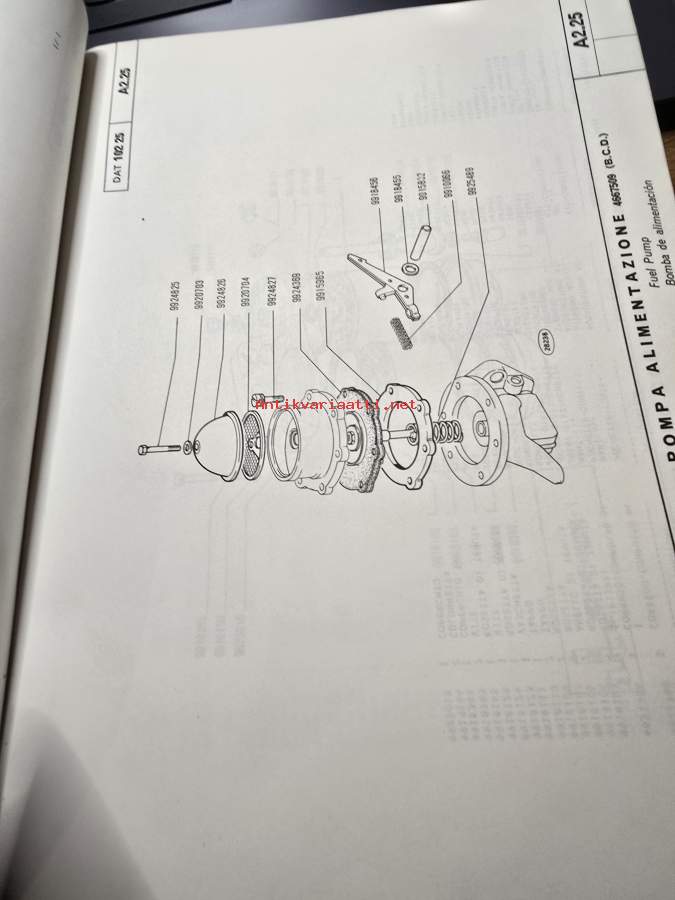 8- kielinen varaosakirja.painettu 1974. 30 mm paksu.
