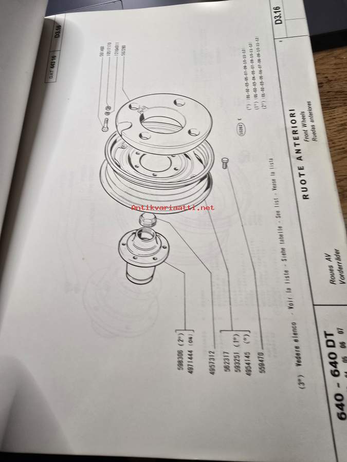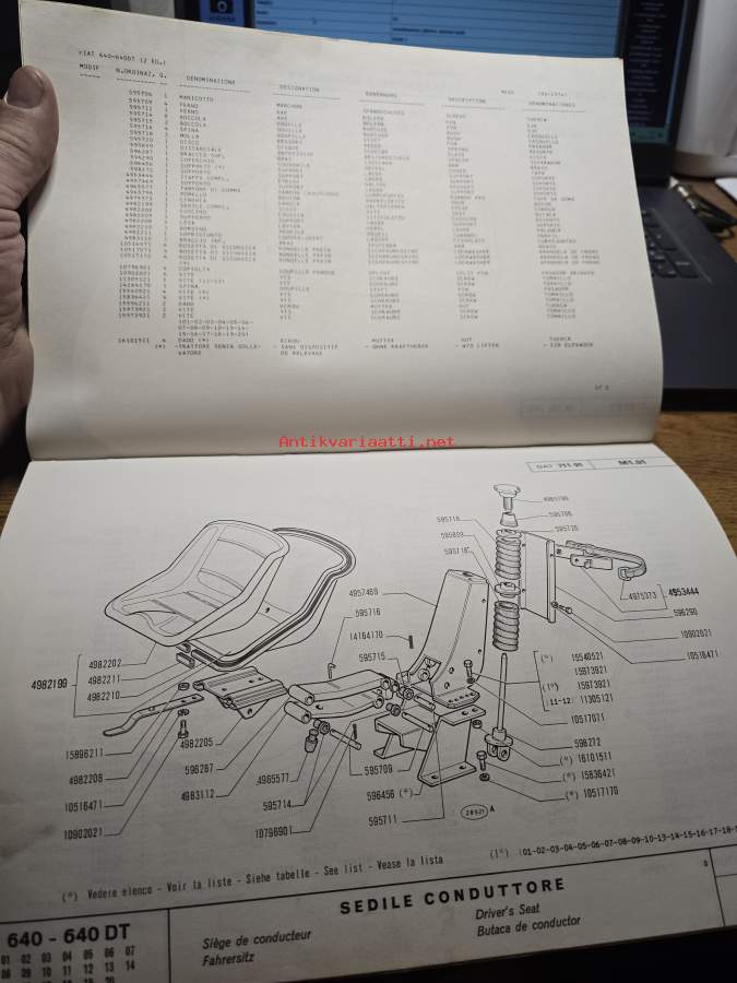 FIAT 640 TRAKTORIN VARAOSALUETTELO.