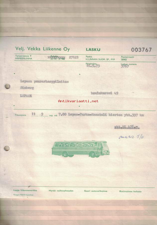 Velj. Vekka Liikenne Oy Lasku 16.9.1973