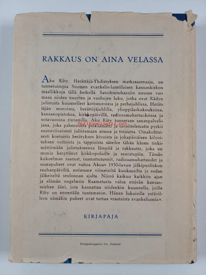 Hyvä. Tarkempi kuntoluokka: K3+ ; Hieman kulumaa reunoilla ja kulmissa. Kansipaperin kunto: repeämiä/kulumaa