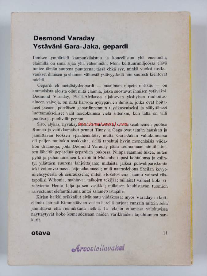 Muu(t) tekijä(t): Seppo LohtajaAlkuteos: Gara-Yaka's domainAsiasanat: eläimet, gepardi