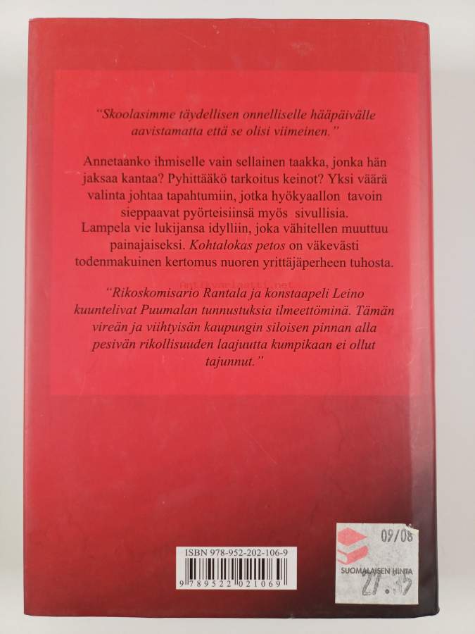 Hyvä. Pientä läikkää kansissa, takana vanha hintalappu, selkämyksessä hieman vinoutta. Kansipaperin kunto: jonkin verran nuhruisuutta & tahraisuutta