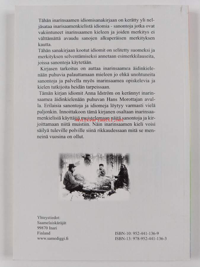 Muu(t) tekijä(t): Hans MorottajaAsiasanat: sanakirjat, suomen kieli, fraasit, idiomit, kielelliset vähemmistöt, vähemmistökielet, inarinsaame, fraseologia, finska, språkliga minoriteter, ordböcker, dictionaries, minoritetsspråk, fraser, fraseologi, idiom, enaresamiska, saamelaiskielet, samiska språk