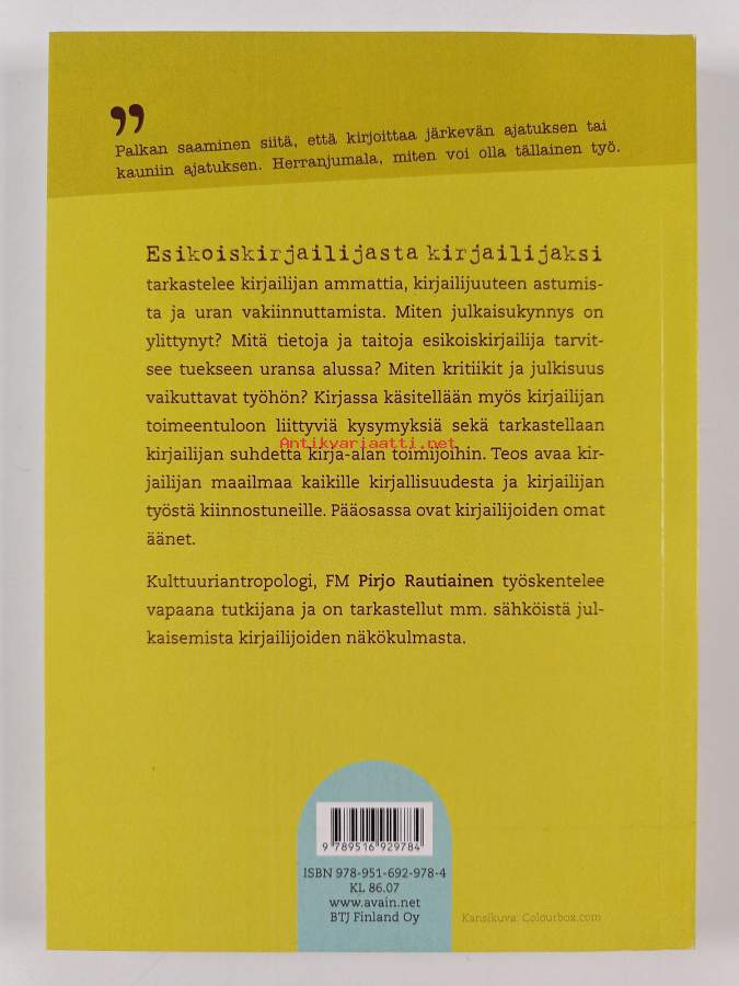 Asiasanat: kirjailijat, kirja-ala, kustantajat, kritiikki, julkisuus, kirjallisuuskritiikki, toimeentulo, ammattikuva, julkaisutoiminta, ammatti-identiteetti, esikoiskirjailijat