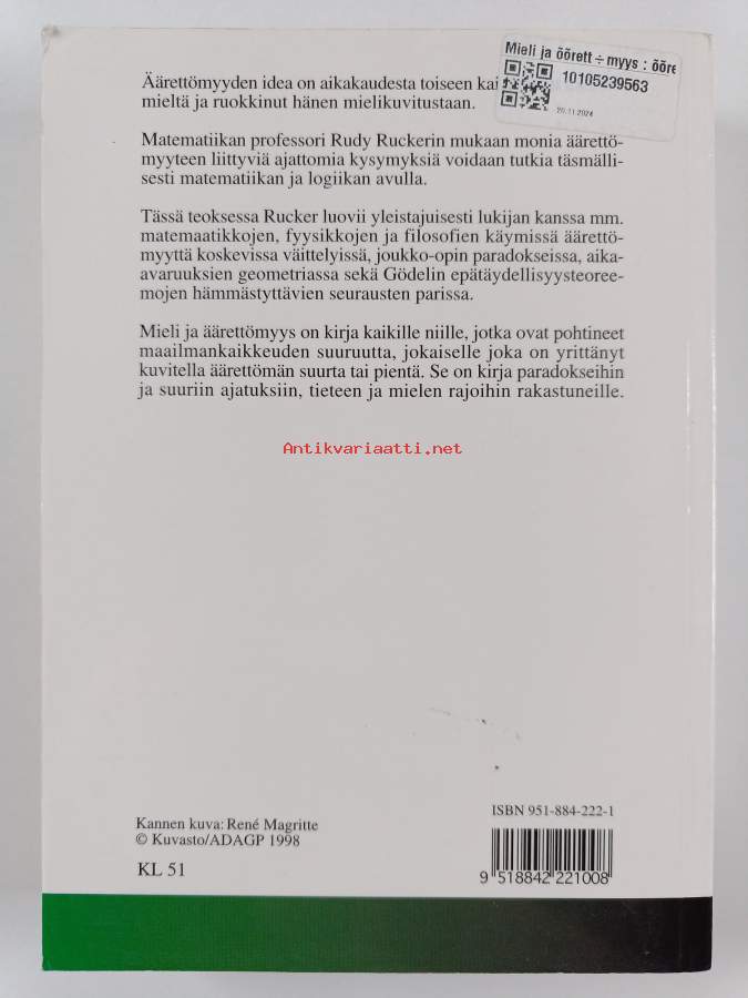Muu(t) tekijä(t): Markus HotakainenAlkuteos: Infinity and the mindAsiasanat: filosofia, maailmankaikkeus, matematiikka, äärettömyys