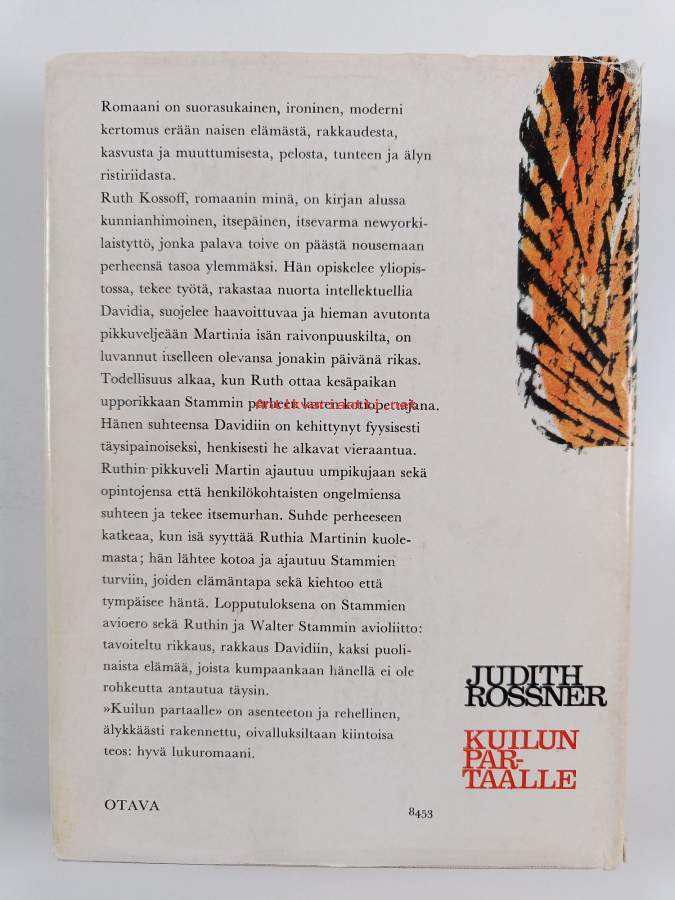 Hyvä. Hieman kolhua reunoilla ja kulmissa, selkämyksessä vinoutta. Kansipaperin kunto: joitain repeämiä/kulumaa