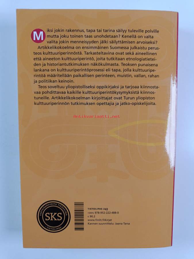 Muu(t) tekijä(t): Outi Tuomi-Nikula, Riina Haanpää ym.Sarja: Tietolipas 243Asiasanat: tutkimus, saunat, yrityskulttuuri, kansanperinne, kulttuuri, arvot, kulttuuriperintö, monikulttuurisuus, rakennussuojelu, kansallinen kulttuuri, rakennusperintö, muistitieto, metodologia, kulttuuri-identiteetti, tuotteistus, arki, teollisuusrakennukset, aineellinen kulttuuri, diskurssi, kansantanssit, arvottaminen, historiatietoisuus, transnationaalisuus, paikalliskulttuuri, aineeton kulttuuriperintö
