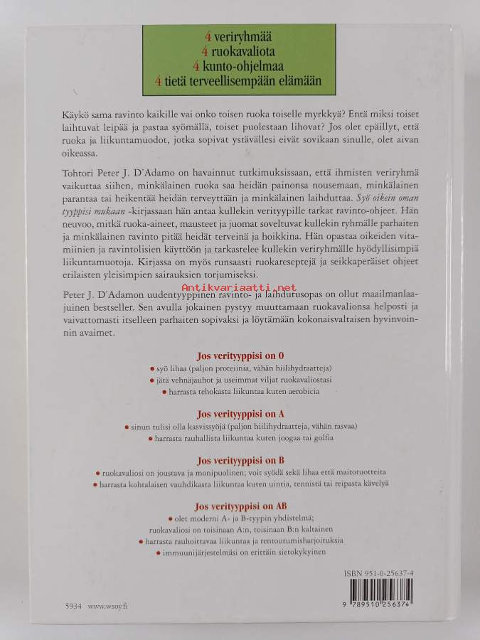 Muu(t) tekijä(t): Tuulikki ValtaAlkuteos: Eat right 4 your type : 4 blood types, 4 diets