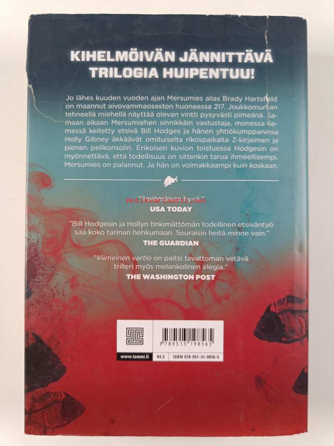 Hyvä. Tarkempi kuntoluokka: K3+ ; Hieman kolhua selkämyksen päissä, selkämyksessä hieman vinoutta. Kansipaperin kunto: joitain repeämiä/kulumaa