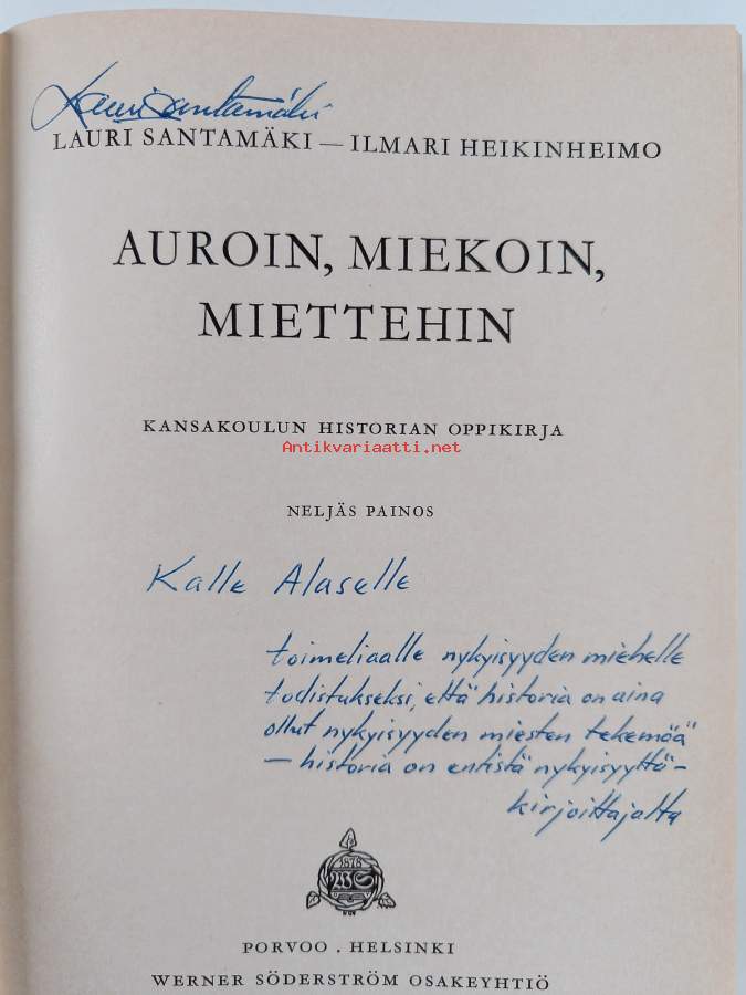 Auroin, miekoin, miettehin : Kansakoulun historian oppikirja (signeerattu, tekijän omiste)