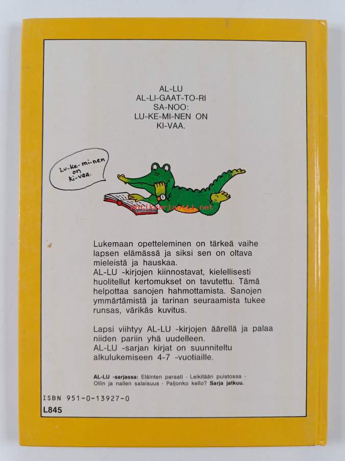Muu(t) tekijä(t): Marja Helanen-AhtolaSarja: Al-lu -sarja; Allu AlligaattoriAlkuteos: The animal paradeAsiasanat: tavukirjat