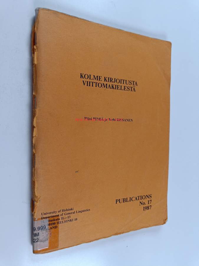 Kolme seuranäytelmää / kirjoittanut Yrjö Veijola.Weijola 98 sivuaSisältö: Sisältää: Palmkvistin kylpymatka. Ihmeellinen asia. Talkoopolska