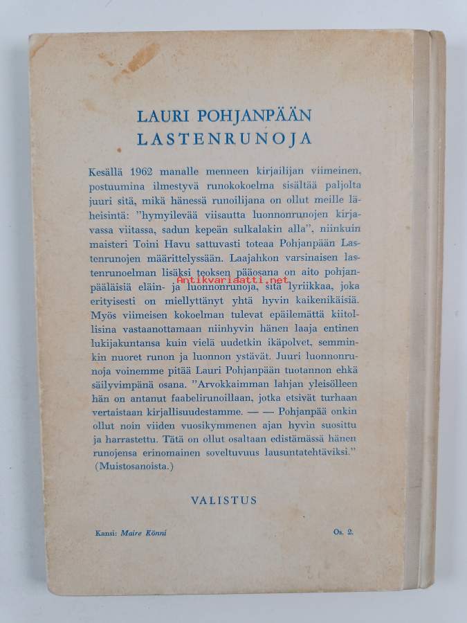 Lakkikirja : lipattomia lastenrunoja ja tupsuttomia eläinloruja (ERINOMAINEN)