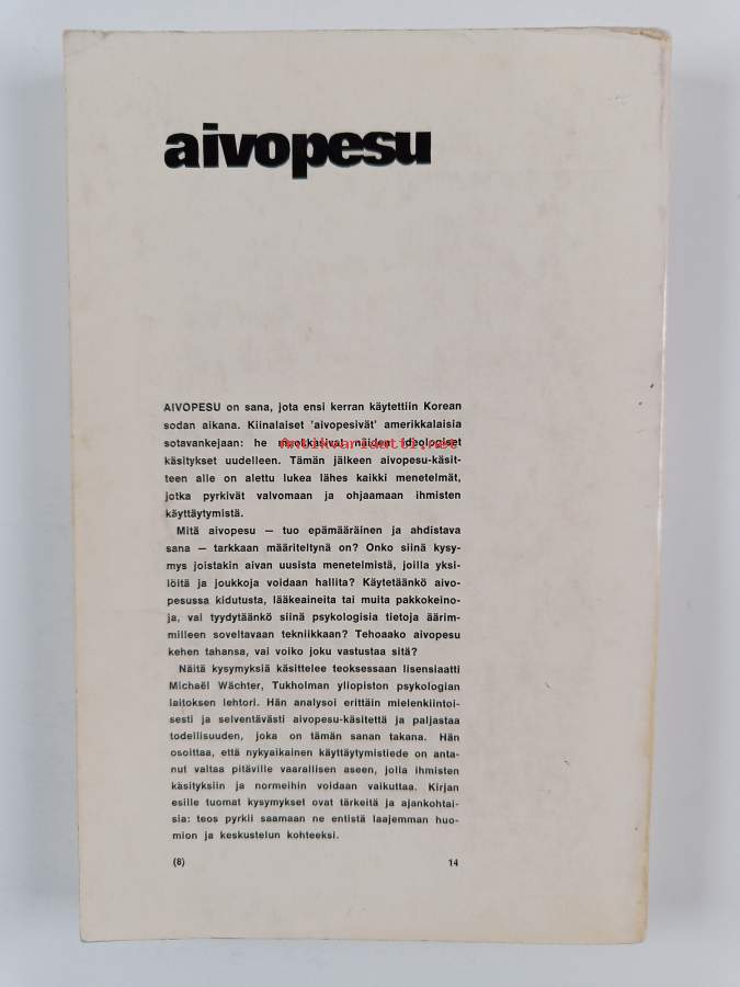 Wächter, Michaël.Teos:[Hjärntvätt]Nimeke:Aivopesu : tutkielma käyttäytymisen valvonnasta / Suom. Ape Kuronen