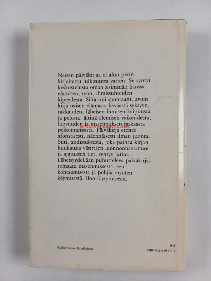 Punainen lanka. 1990. Romaani Punainen lanka kertoo aikuisen naisen tiestä oman paikkansa täyttäjäksi.