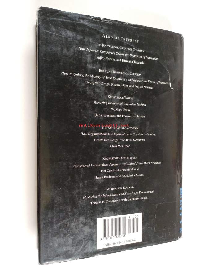 Muu(t) tekijä(t): Ikujiro Nonaka, Toshihiro NishiguchiAsiasanat: yritykset, johtaminen, tietoyhteiskunta, tieto, organisaatiot, organisaatiotutkimus, tietohallinto, innovaatiot, hiljainen tieto, tiedonsiirto, luova toiminta, tietämyksenhallinta, innovation, knowledge, knowledge management, Information society