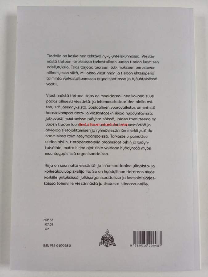 Muu(t) tekijä(t): Pertti Hurme, Tarja ValkonenMerkinnät: omistajamerkintäAsiasanat: tieto, viestintä, organisaatiot, tuotanto