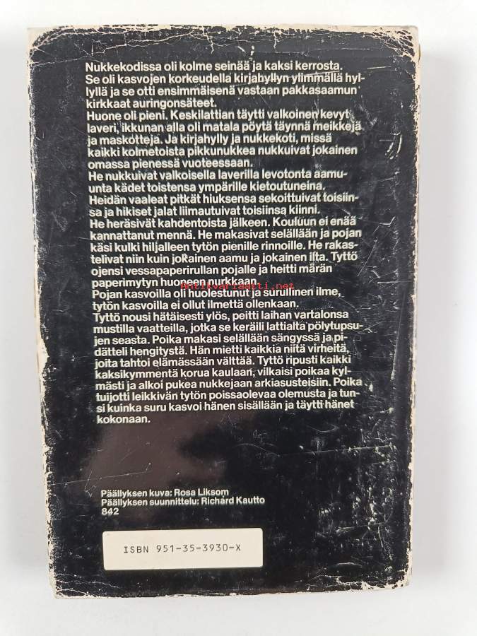 Hyvä. Tarkempi kuntoluokka: K3- ; Hieman kulumaa, kontaktimuovipäällystys, selkämyksessä aavistus vinoutta. Kansipaperin kunto: repeämiä/kulumaa
