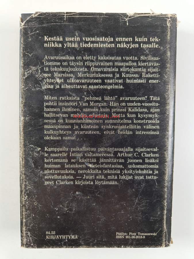 Hyvä. Hieman kulumaa reunoilla ja kulmissa, selkämyksessä vinoutta. Kansipaperin kunto: repeämiä/kulumaa