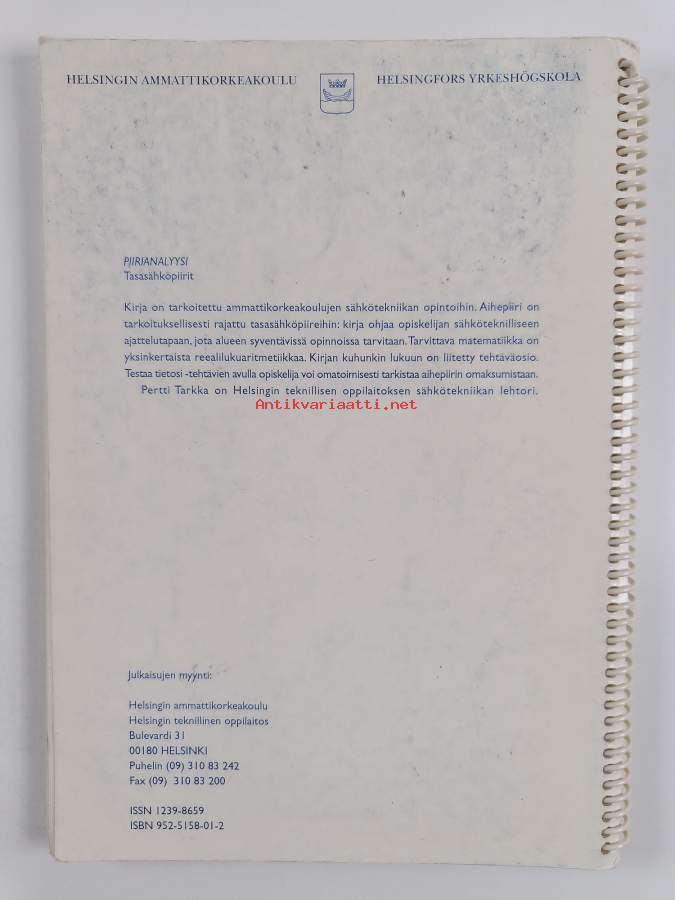 Merkinnät: omistajamerkintäSarja: Helsingin ammattikorkeakoulun julkaisuja. Sarja C, Tekniikan oppimateriaalit 2Asiasanat: sähkötekniikka, resistanssi, virtapiirit, teholähteet, Ohmin laki