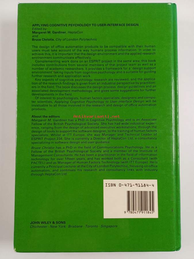 Muu(t) tekijä(t): Bruce Christie, Margaret M. GardinerSarja: Wiley series in information processing