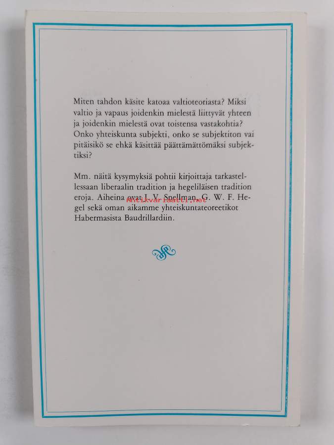 Asiasanat: valtioteoriat, filosofia, vapaus, yhteiskuntafilosofia, moraali, valtio-oppi