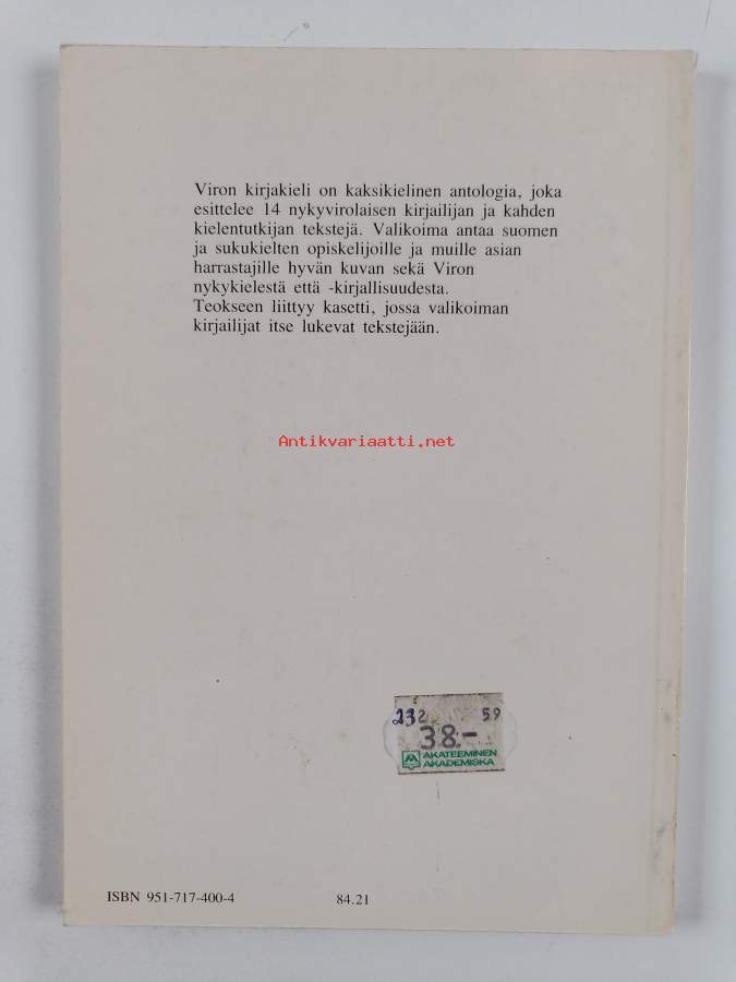 Muu(t) tekijä(t): Pertti Virtaranta, Johanna Laakso ym.Sarja: Näytteitä uralilaisista kielistä 2; The Uralic languages, examples of contemporary usage; Suomi 130Asiasanat: viron kieli, kielennäytteet, suomalais-ugrilaiset kielet, kirjakieli