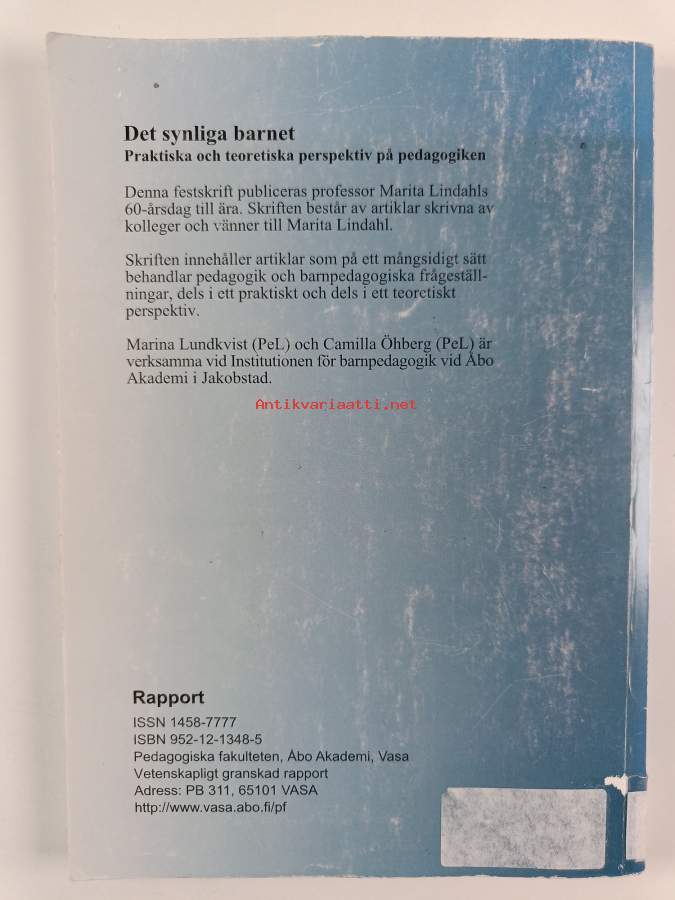 Muu(t) tekijä(t): Marina Lundkvist, Camilla ÖhbergSarja: Rapport / Pedagogiska fakulteten. Åbo Akademi nr 9; Rapport från Pedagogiska fakulteten vid Åbo Akademi nr 9Asiasanat: pedagogiikka, musiikkikasvatus, varhaiskasvatus, päiväkodit, ympäristökasvatus, opettajankoulutus, lapset (ikäryhmät), kielikylpy, käsityökasvatus