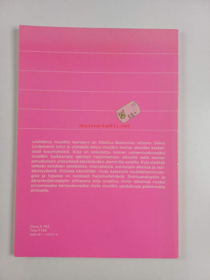 Hyvä. Tarkempi kuntoluokka: K3+ ; Hieman kulumaa kulmissa, takana vanha hintalappu