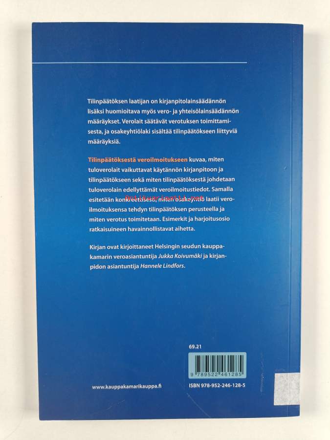 Muu(t) tekijä(t): Hannele LindforsAsiasanat: lainsäädäntö, tilinpäätös, verotus, tuloslaskelmat, kirjanpito, osakeyhtiöt, tulovero, veroilmoitukset, taseet (kirjanpito)