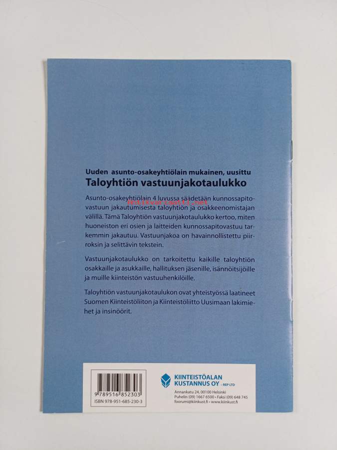Asiasanat: lainsäädäntö, asunto-osakeyhtiöt, vastuu, osakkaat, asunto-osakeyhtiölaki, kunnossapito