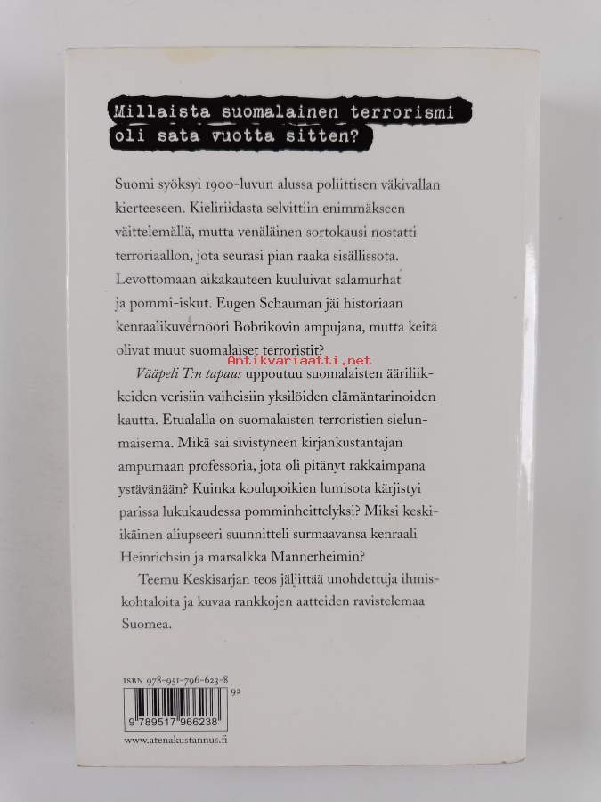 Asiasanat: historia, henkilöhistoria, poliittinen historia, terrorismi, terroristit, henkirikokset, poliittiset liikkeet, Suomen sisällissota, sisällissodat, venäläistämispolitiikka, sortovuodet, kielikysymys, fennomania, ääriliikkeet, poliittinen väkivalta, aktivistit, vastarintaliikkeet, anarkismi, attentaatit, salaseurat