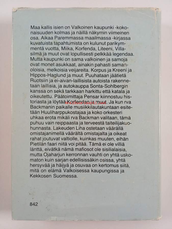 Hyvä. Hieman kolhua selkämyksen päissä, hieman kulumaa. Kansipaperin kunto: jonkin verran kulumaa/pienoisia repeämiä
